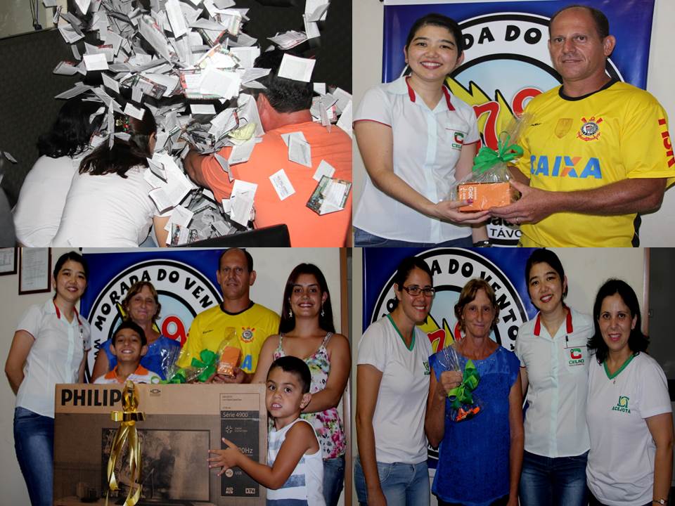 Participaram do sorteio os empresários Celso Shimizo e Alzira Shimizo, bem como funcionárias da ACEJOTA (Elisângela e Solange), além de populares.