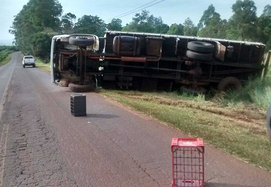 O caminhão Volks 1140 de Palmital (SP) estava carregado de refrigerantes Pet de dois litros.
