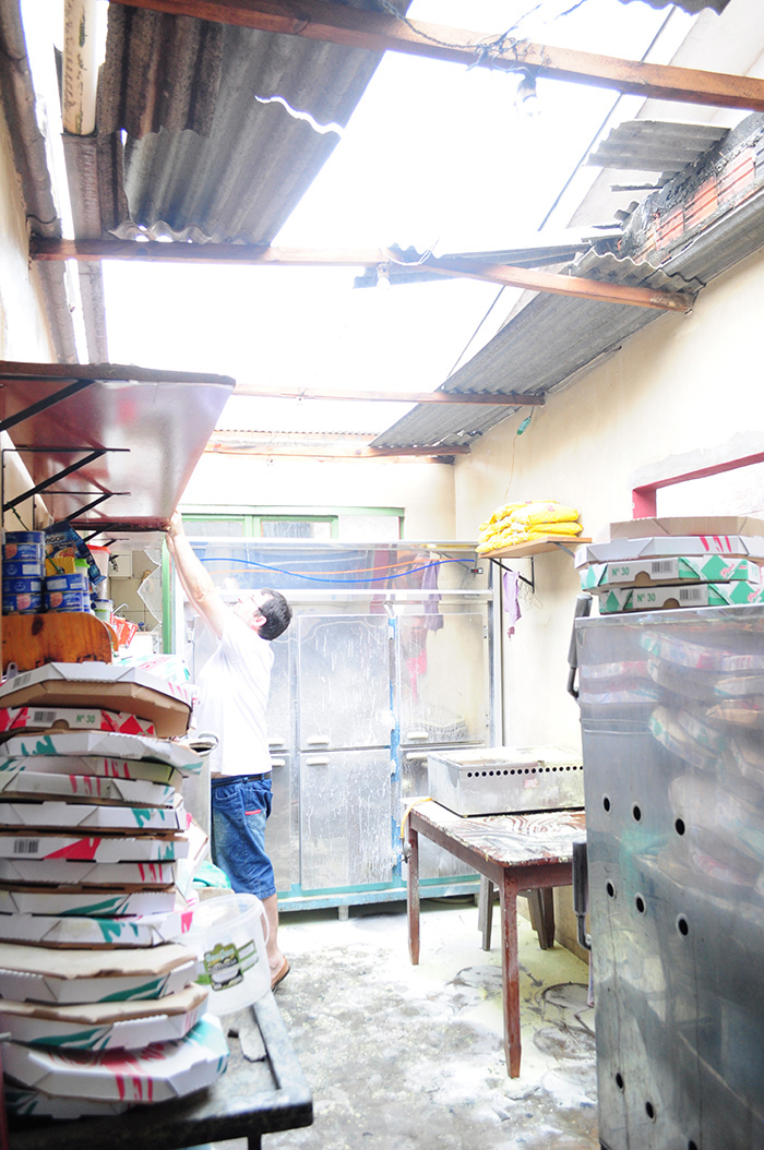 O impacto atingiu o teto da cozinha, além do forro do salão principal e estilhaçou os vidros da porta e janelas.Não havia ninguém no interior no momento da sinistro(Texto e fotos: Circulando Aqui).