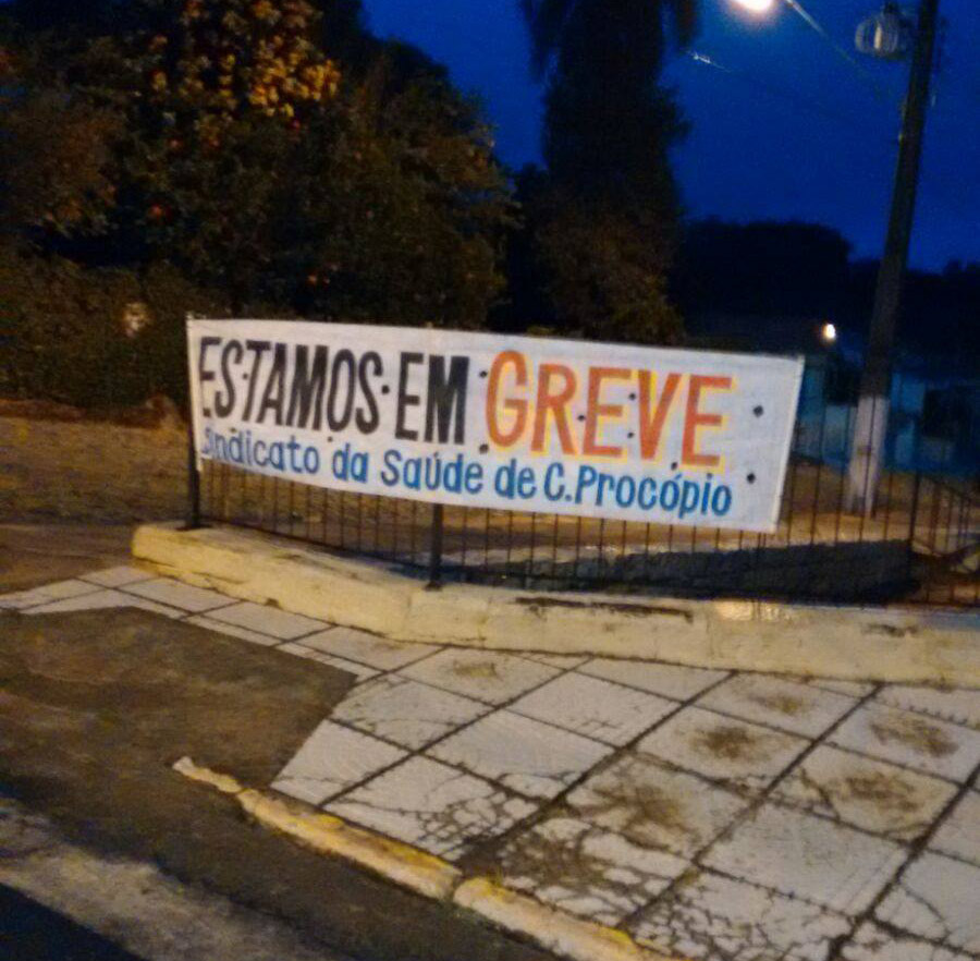 Os trabalhadores se concentram na frente do hospital, que só está atendendo casos graves.Os plantonistas médicos trabalham 24 horas por dia.