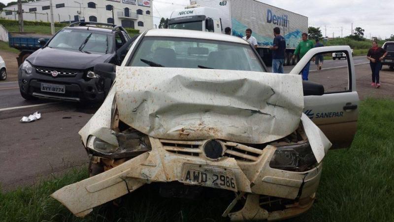 Um acidente, sem vítimas graves, aconteceu por volta das 11h45 desta quarta-feira, (02), na Rodovia BR-153, km 45, próximo a Santo Antônio da Platina. O veículo Fiat Strada, placas AYY-8774 de Siqueira Campos era dirigido por uma senhora que seguia sentido PR-092 e o veículo Gol oficial da Sanepar, seguia em sentido contrário, quando vieram a colidir. A pista ficou interditada por alguns minutos até que a Polícia Rodoviária Estadual e os Bombeiros viessem prestar atendimentos. Os condutores não sofreram ferimentos graves e segundo testemunhas, somente a senhora, de Siqueira Campos, teve algumas escoriações. Ela teve o impacto amortecido pelo AirBag que foi acionado na hora do acidente.