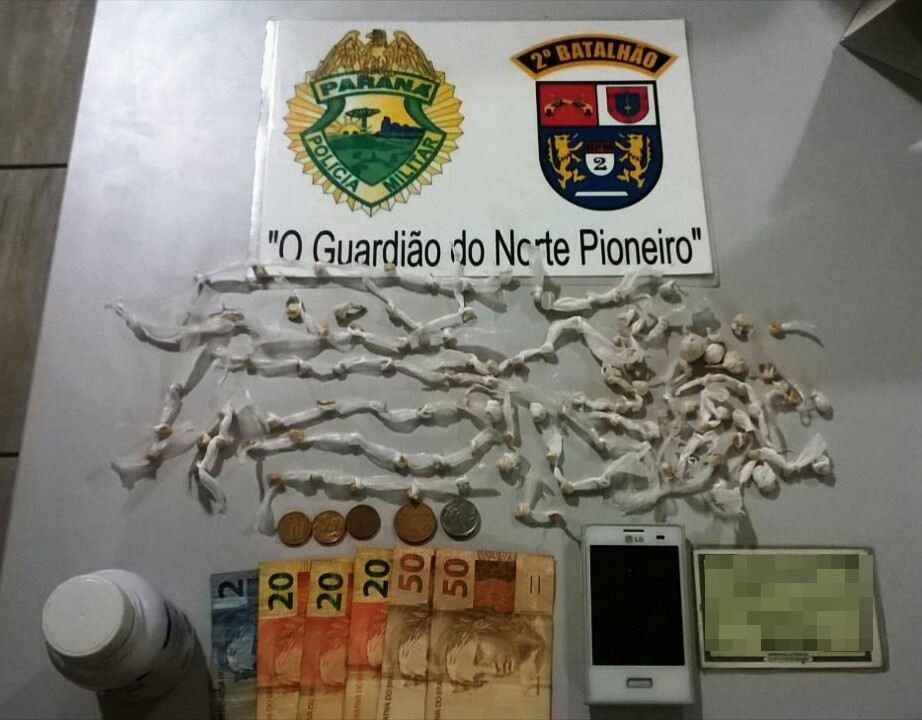 Na sequência o citado motociclista e o garupa saíram da residência e, percebendo que iriam ser abordados, o condutor saiu coma moto em alta velocidade e, após perseguição, foram abordados no pátio do CRAS, onde apreendidas 115 pedras de “crack” e dinheiro. O condutor (23 anos) e o garupa (20 anos) foram identificados e presos, sendo que o garupa assumiu a propriedade da droga, afirmando que levaria o entorpecente para comercializar na cidade de Conselheiro Mairinck.