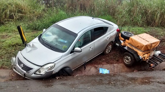 Pouco depois das 10 horas,o motorista de um Nissan com placas de Tupã (SP), perdeu o controle da direção em uma curva no quilômetro 34, e após o veículo rodar na pista ele atingiu de raspão uma árvore e um barranco à margem da rodovia.