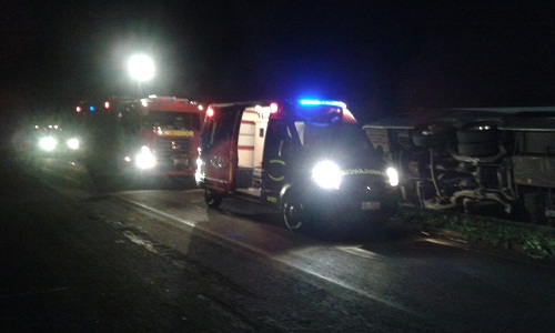 Mais um acidente com ônibus foi registrado no Norte Pioneiro, desta vez na BR-369, em Bandeirantes. O coletivo com placas de Maringá da empresa Vert fazia a linha São Paulo/Londrina, quando tombou por volta das 4 horas no mesmo trevo onde em abril de 2014 um ônibus de turistas também tombou deixando oito mortos e dezenas de feridos.