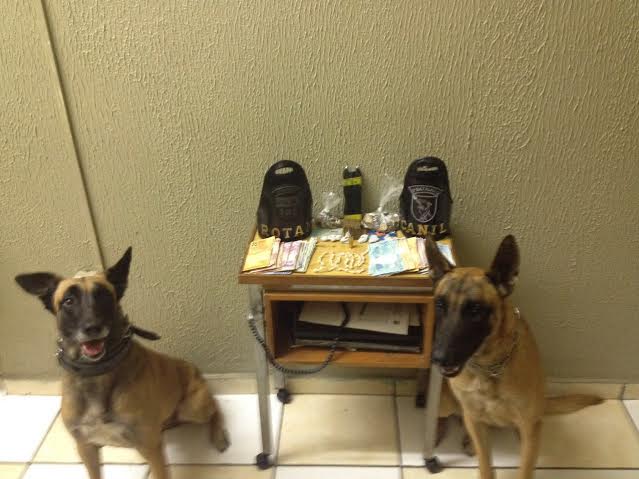 Em buscas na residência do suspeito, que fica anexa ao bar, os PMs, utilizando os cães de faro do CANIL/2ºBPM, localizaram 30 pedras de “crack”, próximas um aparelho de som na sala da casa; num cofre no quarto do suspeito foi encontrado uma munição .44 e dinheiro; no quintal foram encontradas mais 15 pedras de “crack”, dentro de uma geladeira desativa; e mais 07 buchas de maconha dentro de uma tubulação da casa.