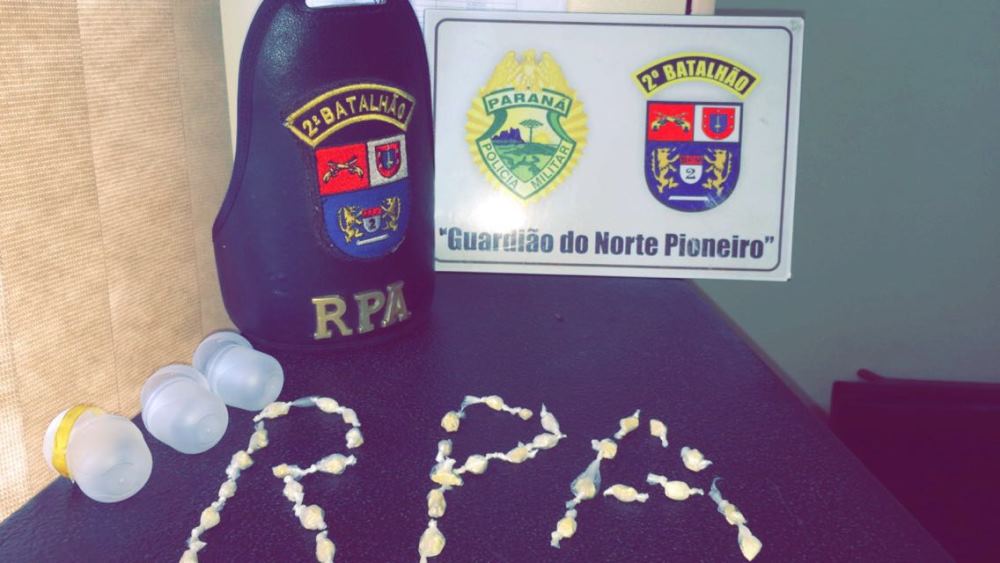 O suspeito foi abordado no local, sendo apreendidos dois frascos plásticos, contendo 35 pedras de “crack”. O indivíduo (17 anos) foi apreendido e encaminhado à Delegacia de Polícia.