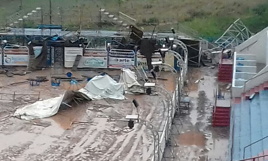 O Centro de Eventos ficou sem cobertura e todos os quiosques e arquibancadas ficaram danificadas, além do barro alto pelo local que quase provocaram o cancelamento oficial,por parte da comissão organizadora, da 17ª edição da Festa do Peão de Boiadeiro do município, que começaria hoje e terminaria no próximo domingo, dia 23.As datas foram alteradas para os dois sábados e domingos(dias 22 e 23 e 29 e 30 deste mês).