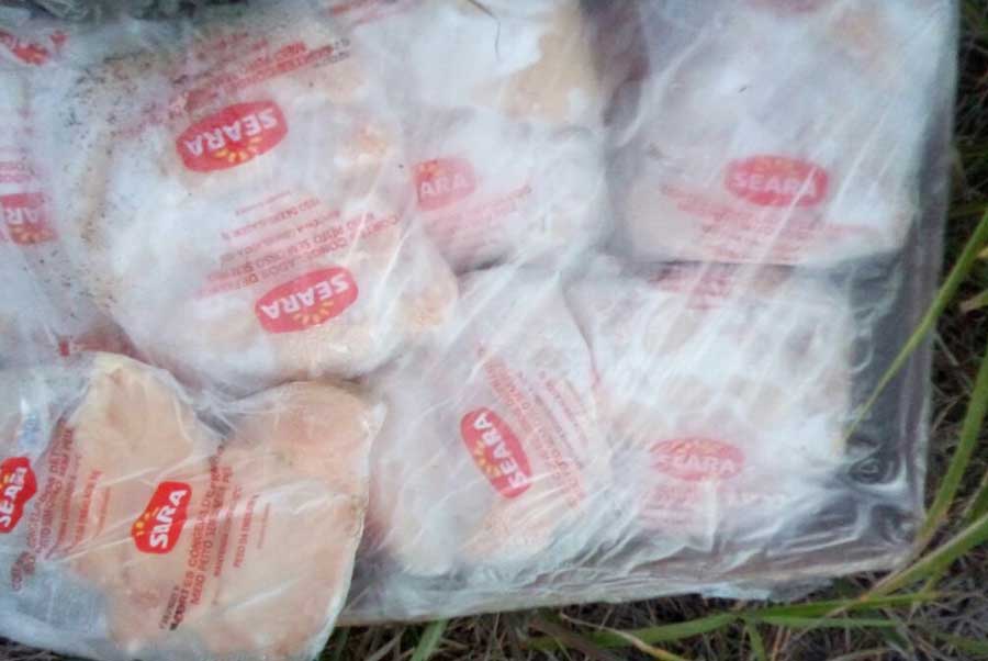 A carreta transportava uma carga de carne congelada de frango da empresa Seara, cuja maior parte se espalhou pelo chão.