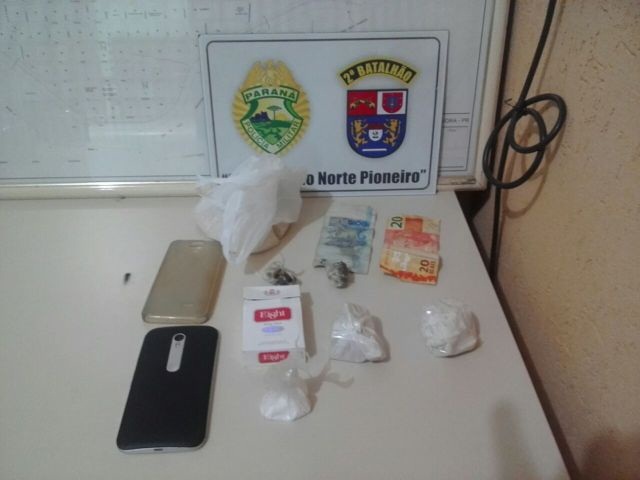Uma adolescente de 16 anos e um garoto de 14 anos foram flagrados com porções de crack, cocaína e maconha em um táxi que os levava de Santo Antônio da Platina para Joaquim Távora na tarde desta quarta-feira (21).