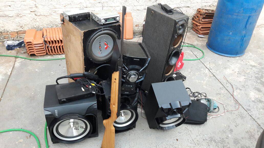 Nas buscas aos objetos foram localizados um revólver calibre 38 dentro da caixa de som apreendida da casa de Ailton.