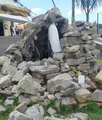 Quatro elementos estavam numa camionete de um modelo semelhante na manhã de ontem, fugiram em alta velocidade da abordagem da Polícia Militar(que desconfiou que estavam com drogas e armas), mas acabaram batendo num poste na frente de uma capela no bairro Santo Antônio, em Cambará.Inclusive, destruíram parcialmente uma imagem de Nossa Senhora de Lourdes.As duas fotos foram tiradas por Mário César Lombardo e circulam pelas redes sociais.