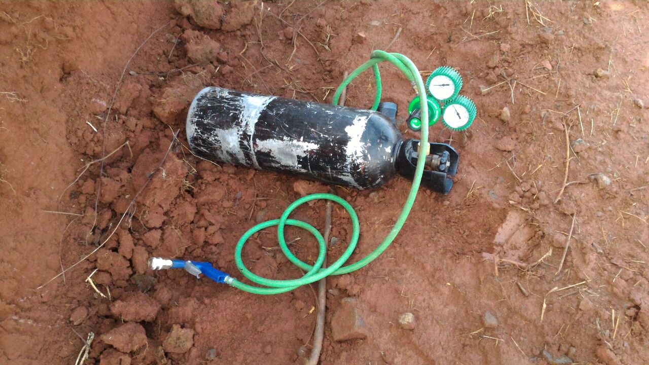O veículo, um Ford Fiesta, foi abandonado na zona rural do município.Em seu interior havia estojos de munição de pistola e fuzil, além de objetos e ferramentas utilizadas pelos criminosos.