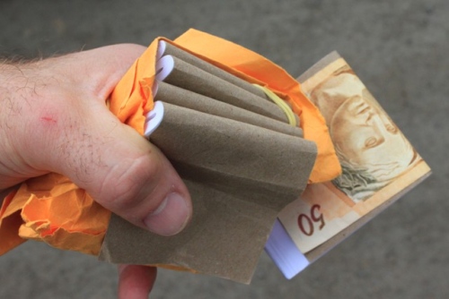 Durante o trajeto para buscar a bolada, os criminosos param próximo a um bar e pediram à mulher que comprasse uma garrafa de água mineral, porém, que deixasse a bolsa no carro, pois seria arriscado descer com aquela quantia em dinheiro.