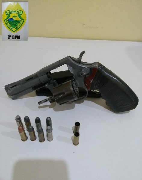 A arma foi localizada e identificada como sendo um revólver Taurus caramuru calibre 32 com três munições intactas (foto). O motorista informou que teria três mandados em aberto e está foragido da penitenciária de Ponta Grossa.