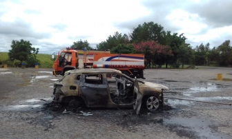 O carro ficou totalmente destruído com o fogo.