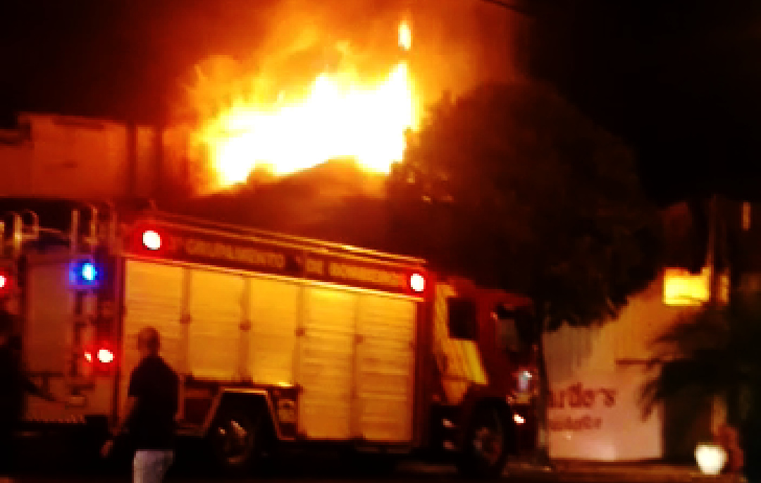 O local fica ao lado da prefeitura na avenida Getúlio Vargas. Pelas imagens é possível ver as labaredas com pelo menos três metros acima do telhado.