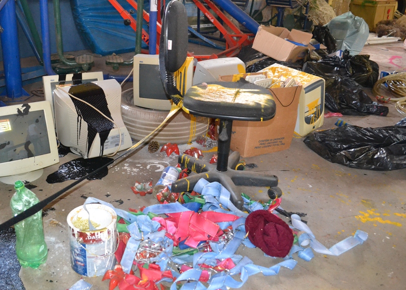 O ato de vandalismo fica evidente porque latas de tintas para os próximos trabalhos foram abertas e as tintas despejadas sobre os objetos e espalhados por todo o barracão. Segundo levantamento dos funcionários nada foi levado. Nem mesmo os computadores que estavam armazenados enquanto se organizava o espaço onde seriam instalados para atividades dos alunos do Projeto, pelo contrário foram também danificados. O estrago só não foi maior porque parte dos enfeites foram guardados em outro espaço.