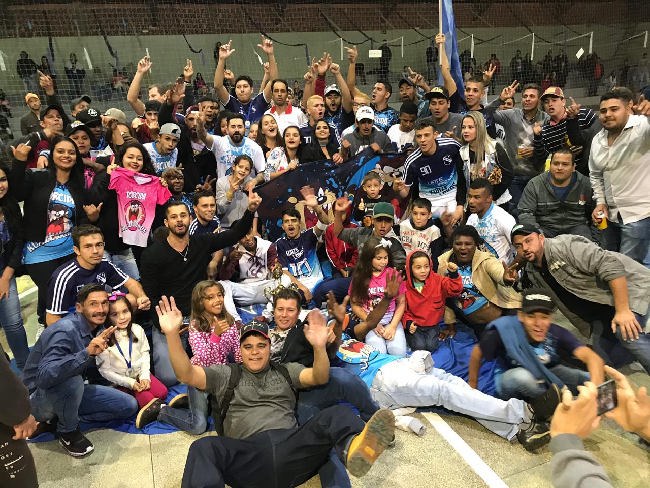A torcida azul e o batuque invadiram a quadra comemorando com muita alegria junto com os jogadores o título.