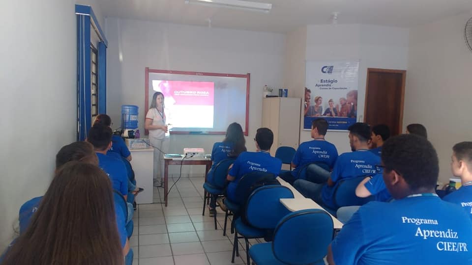 Nos dias 21e 25 de outubro a Equipe Zilda Arns Neumann esteve no período matutino e vespertino no CIEE (Centro de Integração Empresa - Escola) Jovem Aprendiz, dando orientações aos alunos(as) sobre a Campanha Outubro Rosa, em prevenção ao Câncer de Mama e Colo de Útero, sendo os tipos de Câncer que mais mata mulheres no mundo inteiro. O objetivo principal da campanha é alertar as mulheres a prevenção e o diagnóstico precoce.