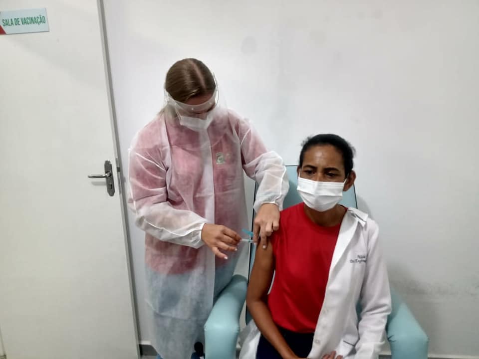 A terceira imunizada, Nilza Maria Silvano, também técnica de enfermagem, de 48 anos. As primeiras imunizadas na cidade são trabalhadoras da linha de frente do combate a Covid-19.