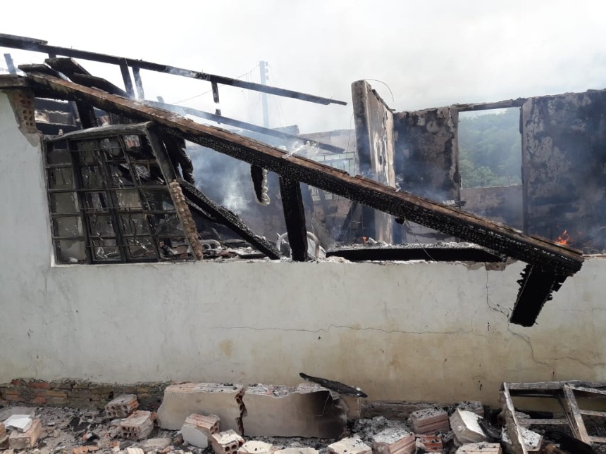 A casa foi totalmente consumida pelas chamas, no momento do incidente não havia ninguém no local, portanto não há vitimas.