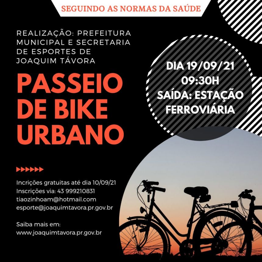 A Prefeitura de Joaquim Távora, através da secretaria de esportes, promove no domingo (19/09) o 1º Passeio Ciclístico em comemoração ao aniversário da cidade.