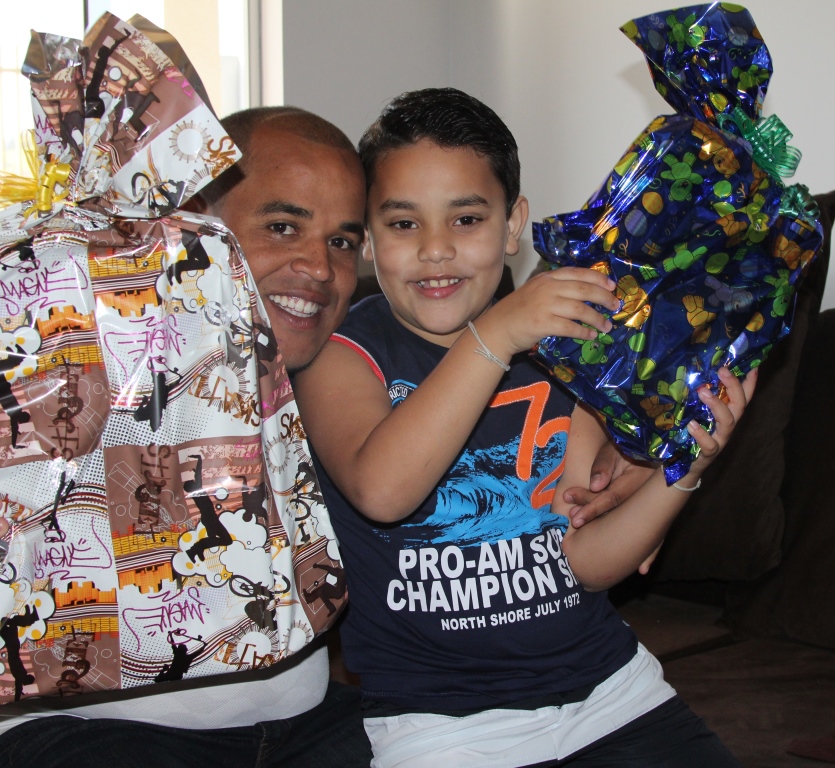 O baixinho já começou a ganhar seus presentes e está super feliz.