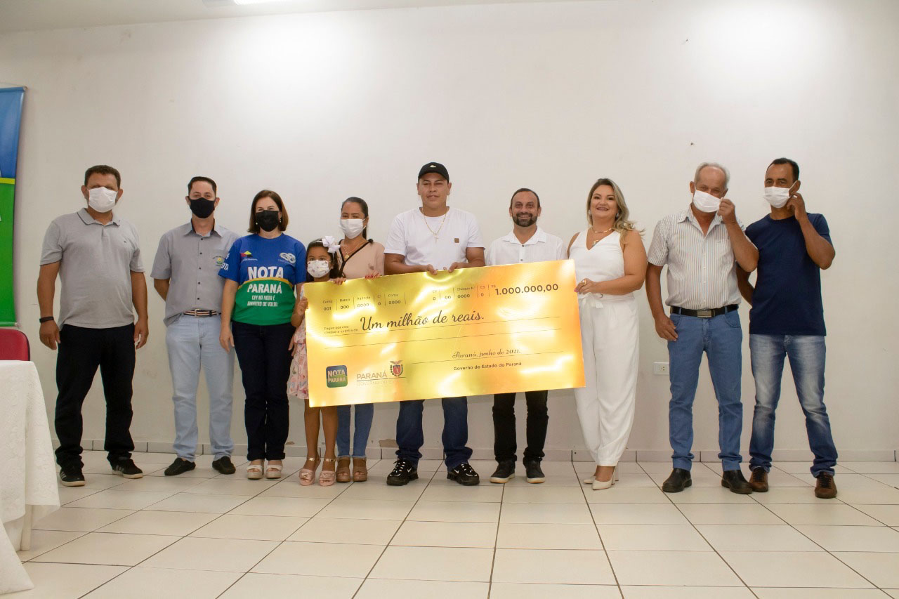O Governo do Estado, por meio da Secretaria da Fazenda, entregou nesta quinta-feira (10) o prêmio de R$ 1 milhão do sorteio de fevereiro do programa Nota Paraná. O milionário da vez é Giovane H. de 21 anos, morador de Lobato, município do Noroeste do Estado. Na segunda (7), data do sorteio, outro acontecimento marcou a vida do rapaz: o nascimento do seu filho.