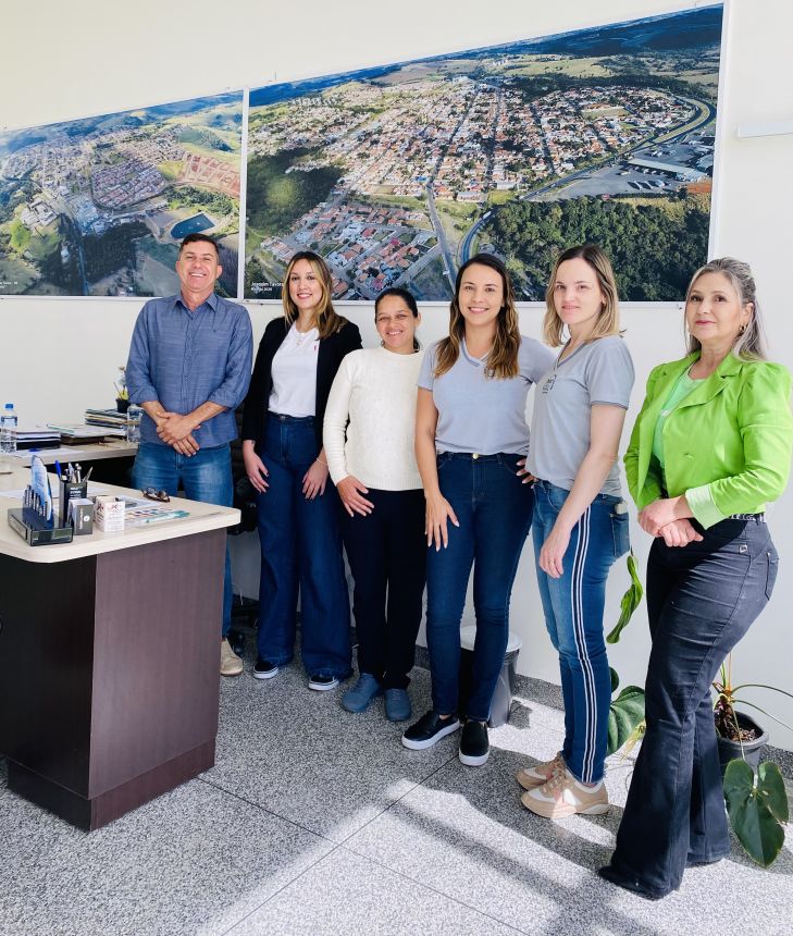 O prefeito Reginaldo Vilela, chefe do setor de Recursos Humanos (RH), Cleide Jonaits, assessoras pedagógicas e educacionais do município Niélle Marques Sinhorini e Fernanda Santos Carvalho empossaram hoje sexta-feira(07/10) os novos servidores.