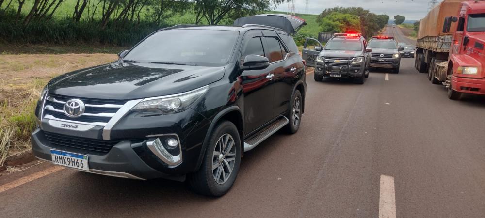 A abordagem aconteceu na BR-369, próximo ao Santuário São Miguel Arcanjo. O veículo tinha registro de furto ocorrido na cidade de Londrina no dia 14 de setembro do ano passado e, de acordo com a PM, seguia para o estado de São Paulo.