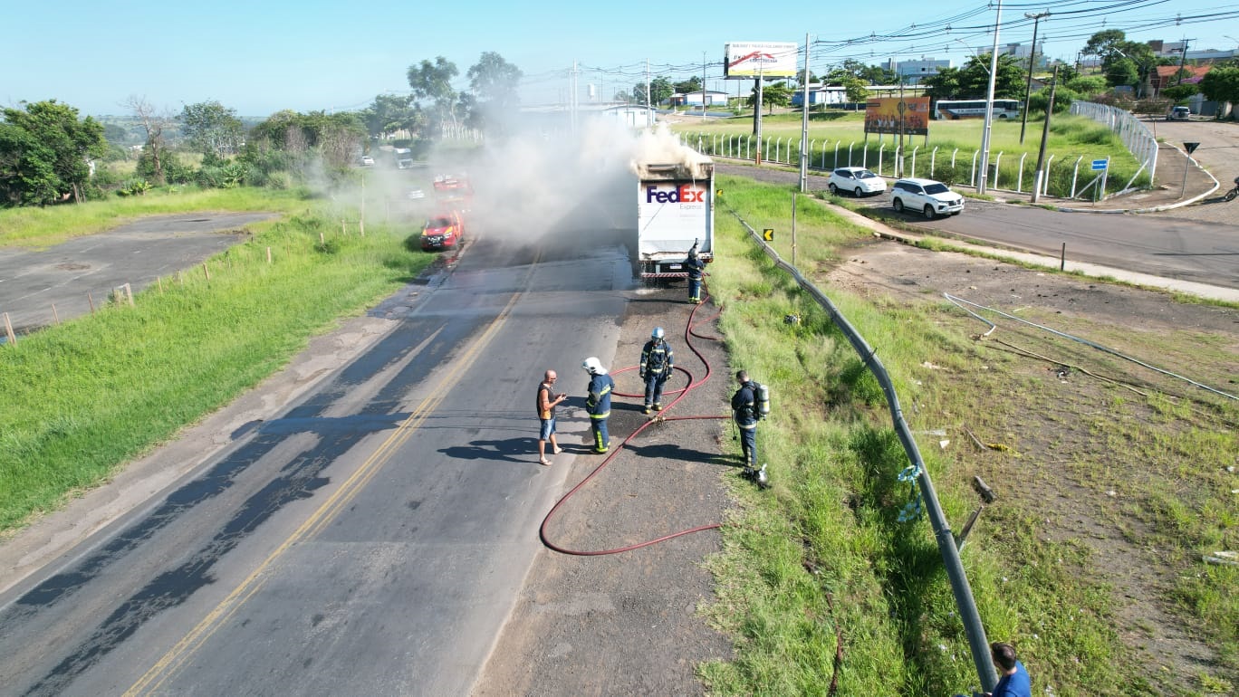 O baú de um caminhão da FedEx com diversos produtos ( papel, plástico etc) pegou fogo em torno de 7h15m desta quinta-feira, dia nove, no KM 303 da PR-092. O fato aconteceu no perímetro urbano, perto do Posto/restaurante Mazoti, em Joaquim Távora.