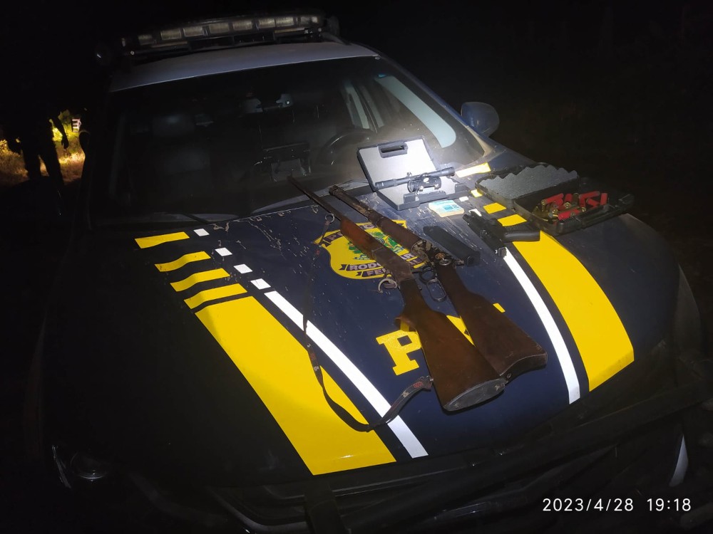 Na propriedade havia muita mercadoria roubada, além de três armas longas, uma pistola 9mm e munições de calibre 12, de 5.56 e de 32.