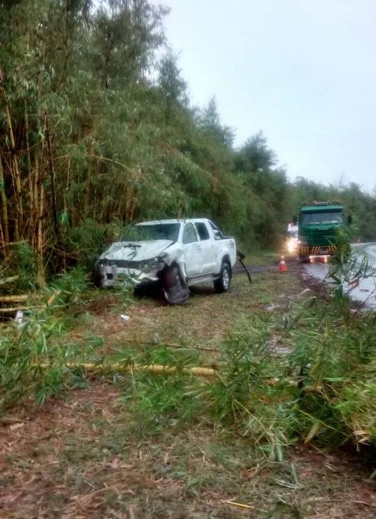 A camionete "voou" e cairia numa ribanceira, mas ficou presa num bambuzal(fotos).
