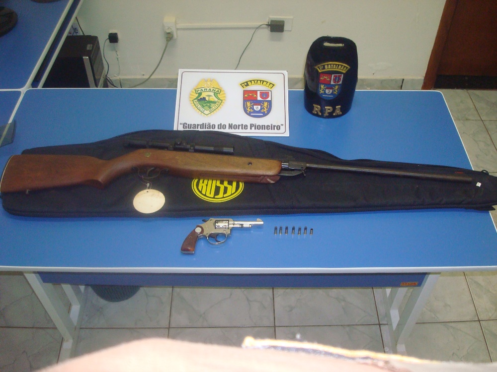 O revólver e a espingarda de pressão foram apreendidos e entregues na Delegacia de Polícia para providências.