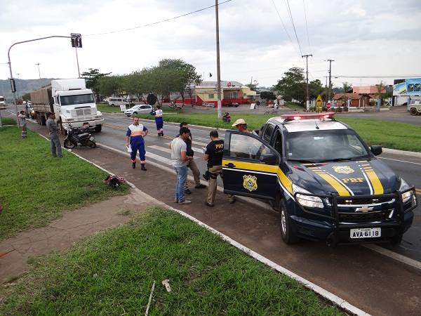 Uma carreta com placas de Rio Negrinho (SC) passou sobre duas motos e deixou duas pessoas feridas no início da tarde desta quinta-feira (17), na BR-153, no trevo de acesso à rodovia Deputado Benedito Lúcio Machado (estrada da Platina), em Santo Antônio da Platina.