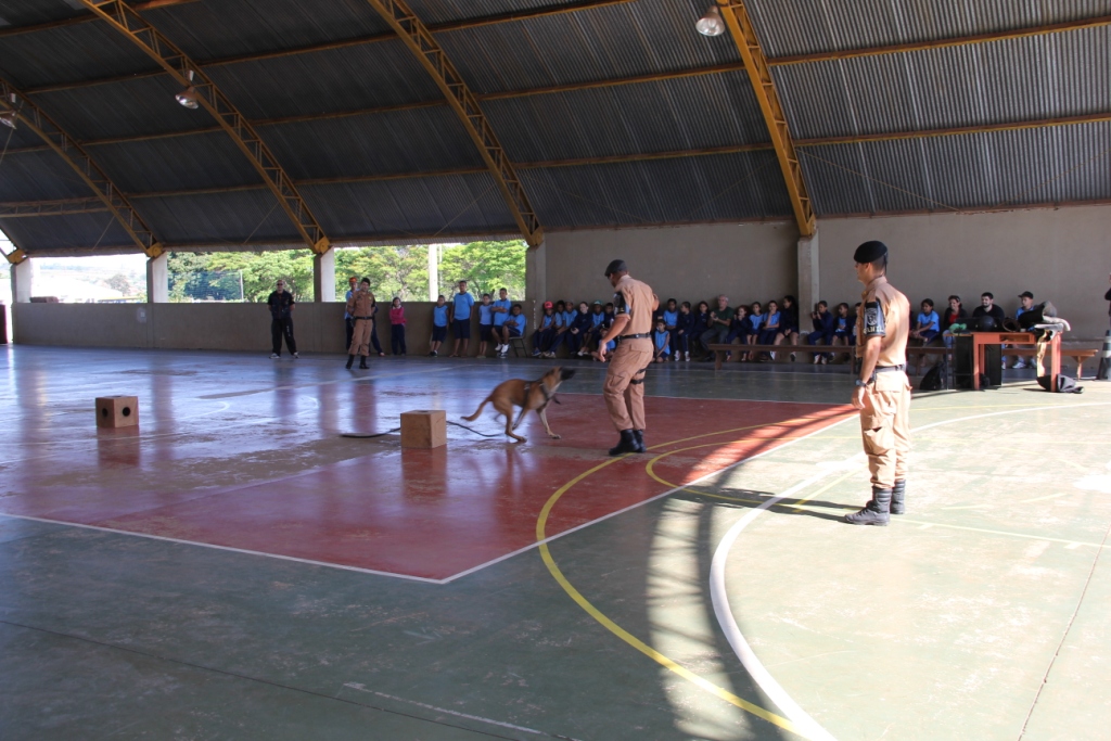 No Batalhão, os alunos conheceram as dependências da Unidade, bem como e participaram da apresentação da ROTAM/CANIL.