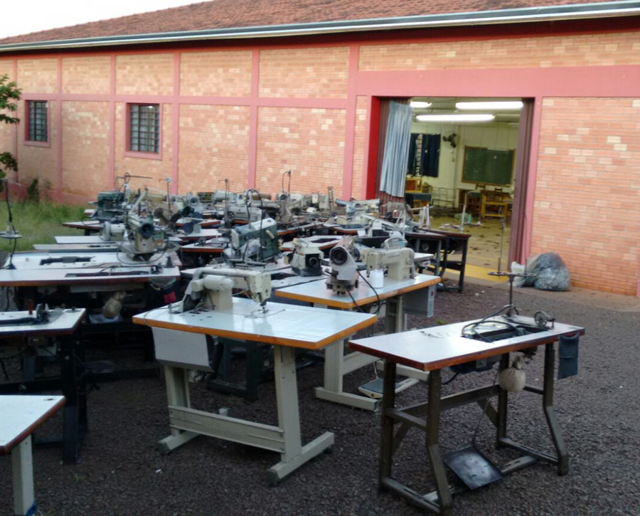 O maquinário, de acordo com os manifestantes, ficou ao relento no pátio, mas depois foi recolhido (fotos).