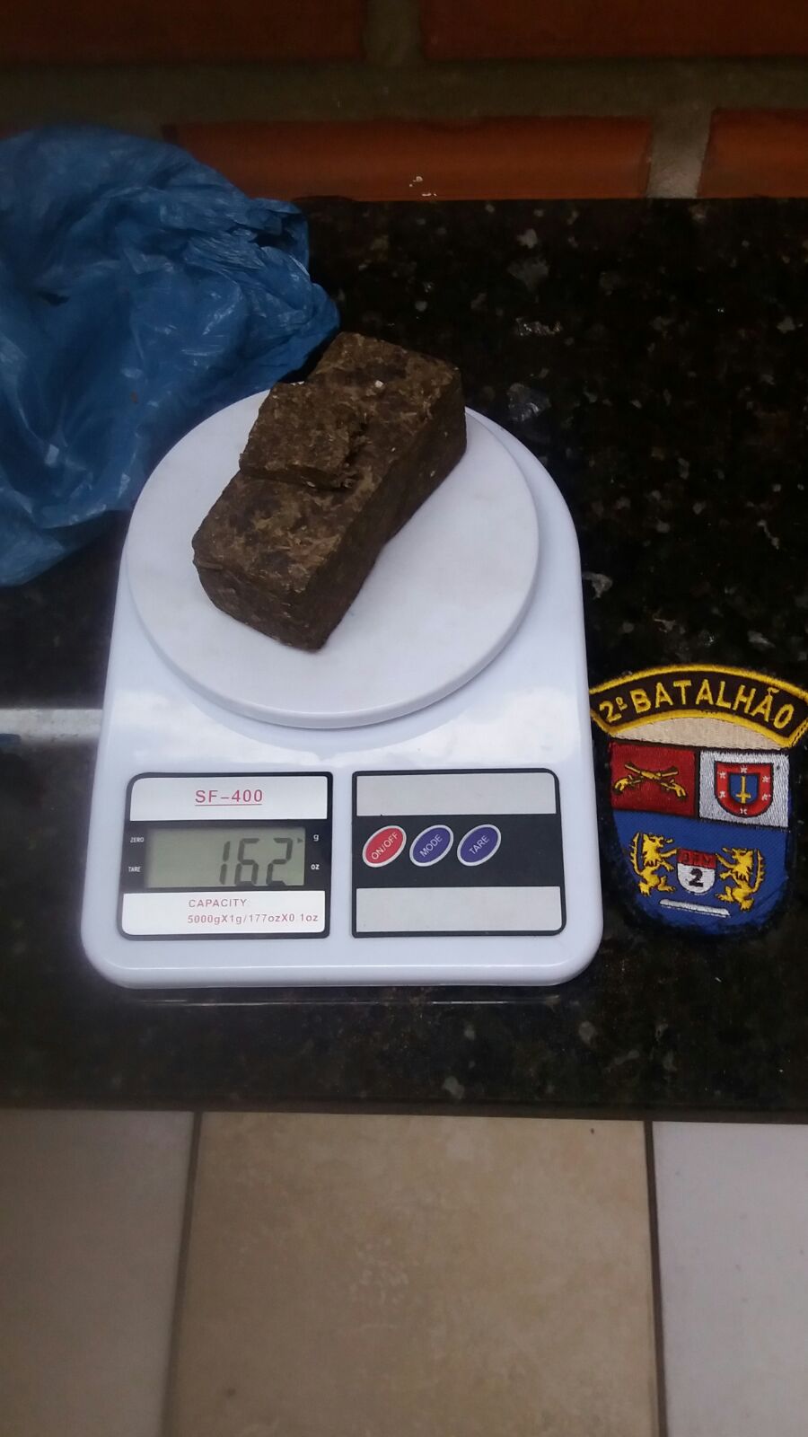 Ao averiguar o pátio foi constatado um invólucro preto amarrado com uma linha, sendo que dentro continha aproximadamente 162 gramas de maconha, e um dos presos estava tentando alcançar o entorpecente com um artefato feito de tecido e ganchos de ferro. Não foi possível localizar o indivíduo que arremessou a droga dentro da cadeia.