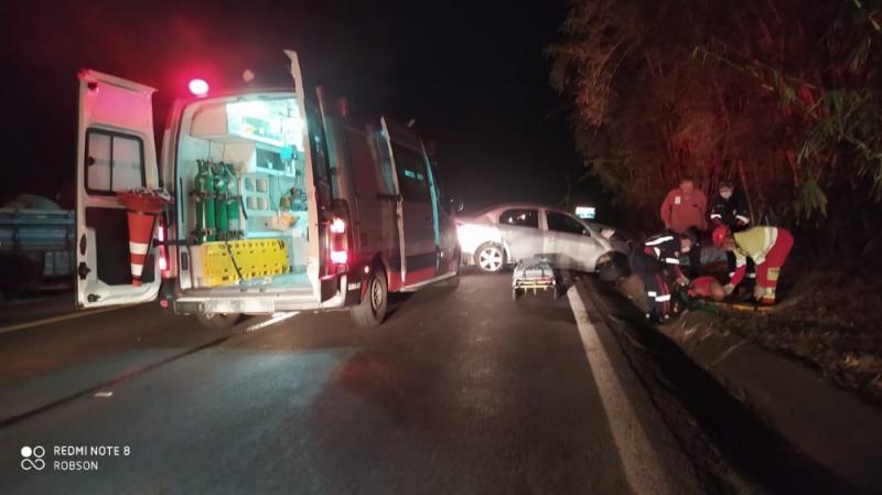 Duas pessoas ficaram feridas na noite desta terça-feira (28) em uma colisão frontal envolvendo um carro uma caminhonete, na BR-153, próximo ao Posto Acaron, trecho entre Santo Antônio da Platina e Jacarezinho.