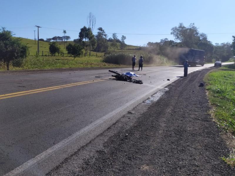 Um motociclista morreu no início da tarde desta sexta-feira (21), após colidir contra uma carreta na PR-092, próximo a Joaquim Távora – Norte Pioneiro paranaense.