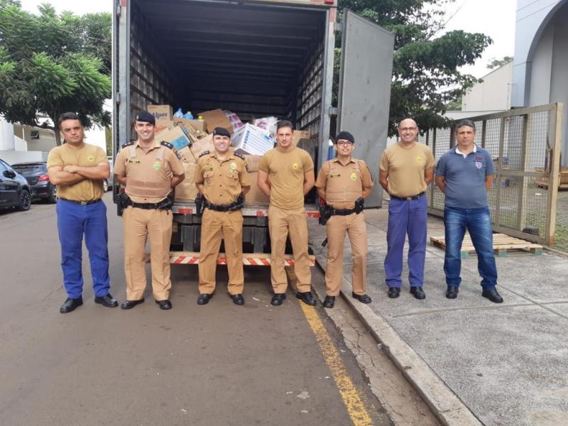 Num momento de rara emoção, o comandante do 2º BPM, Tenente-Coronel PM José Luiz de Oliveira,acompanhou a entrega, realizada na manhã de quinta-feira (21), de quase oito toneladas de alimentos não perecíveis ao Hospital do Câncer de Londrina |