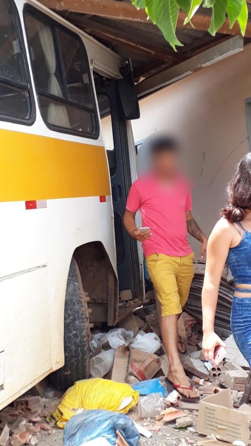 Um ônibus desgovernado invadiu uma casa na tarde deste sábado, 5, no município de Carlópolis.