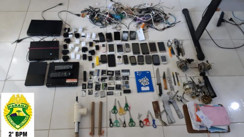 Operação bate-grade realizada pela Polícia Militar na manhã de terça-feira (25) na cadeia de Ibaiti, a pedido do Ministério Público Estadual (MP-PR), resultou na apreensão de celulares, droga, armas e vários objetos proibidos.