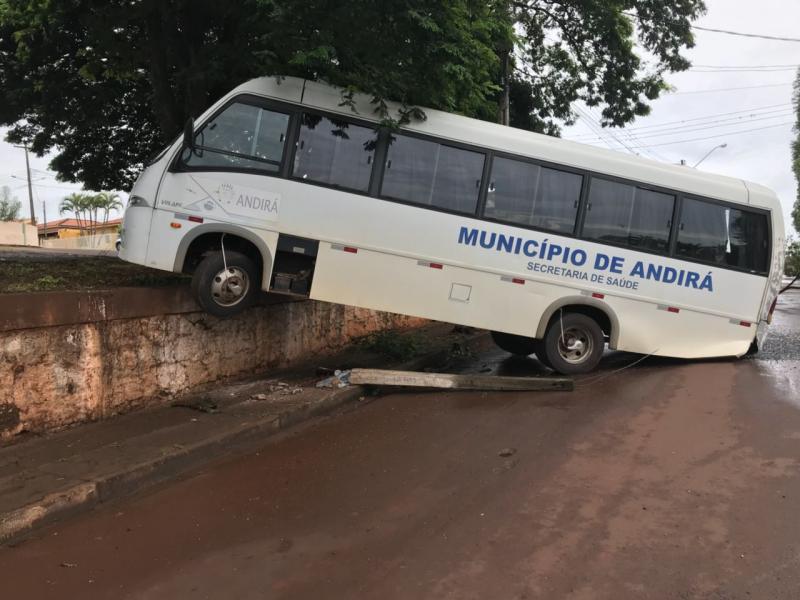 Um acidente com um ônibus da Secretaria Municipal de Saúde de Andirá assustou os moradores na manhã desta quarta-feira (17). O coletivo apresentou problemas mecânicos e desceu desgovernado a rua Major Barbosa Ferraz, no centro da cidade, até atingir um muro. |