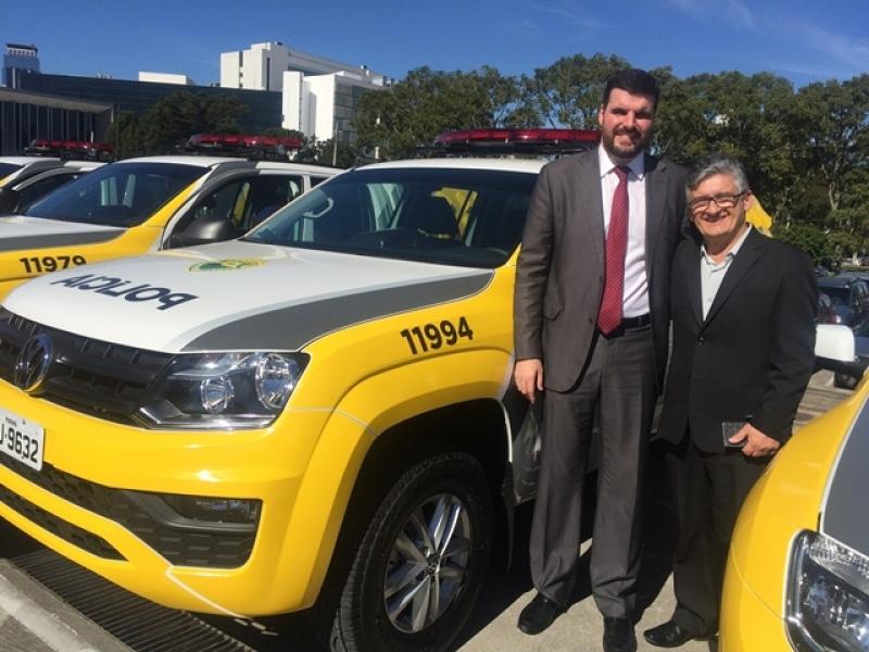 O deputado estadual Pedro Lupion (Democratas) participou nesta terça-feira, 27, da entrega das primeiras 457 viaturas policiais de um total de 1.200 adquiridas pelo governo Beto Richa (PSDB). Por intermédio do Programa Paraná Seguro, 37 cidades que compõem a Amunorpi |