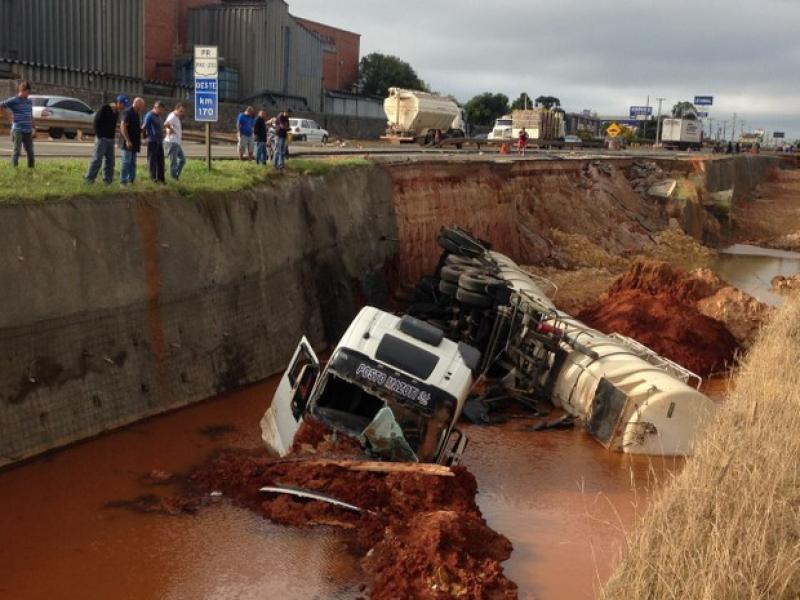 Um caminhão-tanque bitrem carregado com óleo diesel da empresa tavorense Posto Mazoti, caiu em um buraco de uma obra na beira de PR-151 na madrugada deste sábado (11) em Ponta Grossa, na Região dos Campos Gerais do Paraná. Segundo a Polícia |