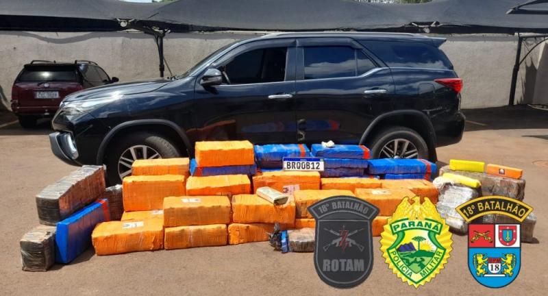 Policiais da Rotam do 18º Batalhão de Cornélio Procópio/PR apreenderam na manhã desta segunda-feira (22), em Bandeirantes/PR, uma caminhonete Toyota Hilux/SW4 carregada com 740 kg de maconha.