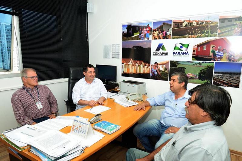 João Naime Neto, superintendente de Relações Institucionais e chefe de gabinete da Companhia de Habitação do Paraná (Cohapar), e Roberto Erzinger, diretor de Obras, receberam nesta quarta-feira, dia nove, na sede da empresa, em Curitiba, o prefeito reeleito |