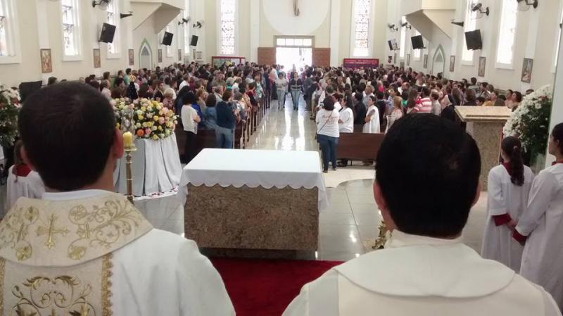 Centenas de fiéis acompanharam a celebração da missa ás 9 da manhã na Igreja Paroquial São Sebastião, presidida pelos padres Valdemir e |