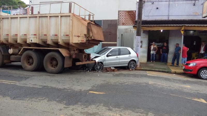 Um caminhão desgovernado, perdeu o freio e controle na Avenida Paraná, no centro de Joaquim Távora e acabou colhendo um veículo Fiat Pálio.